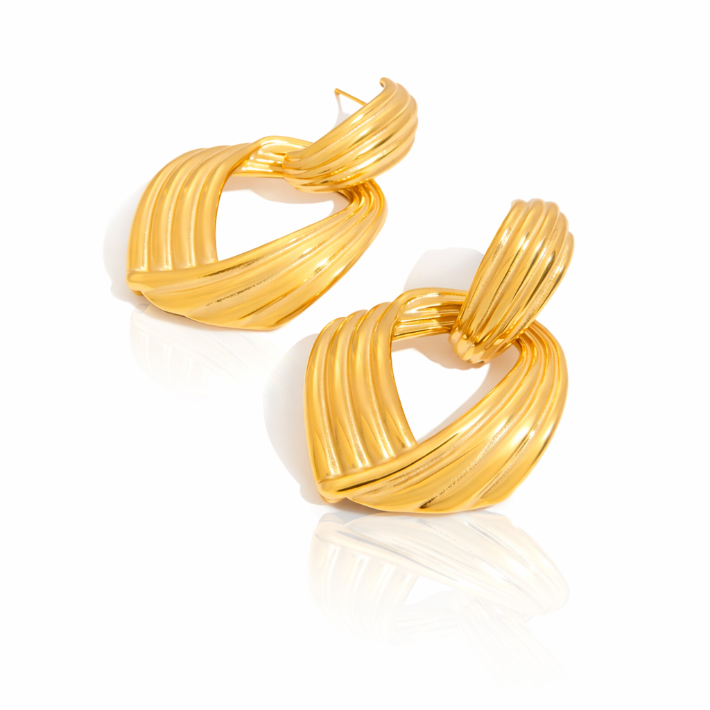 The Genevieve Earrings feature a sculptural, flowing design with softly contoured gold curves that catch...