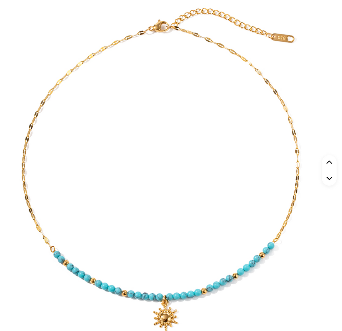 The Shay Necklace blends delicate turquoise beads with a dainty gold chain, creating a soft,...