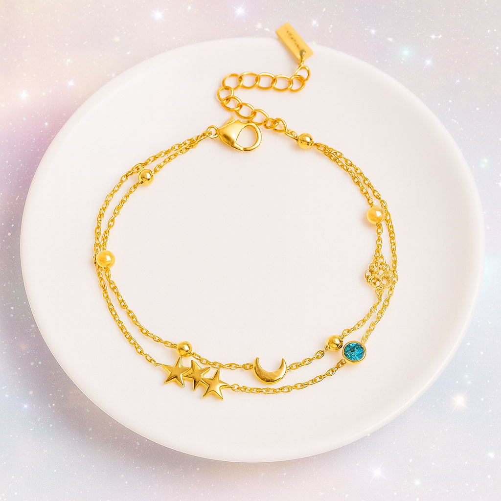 The Starlight Bracelet captures the magic of the night sky with its delicate double-layered design....