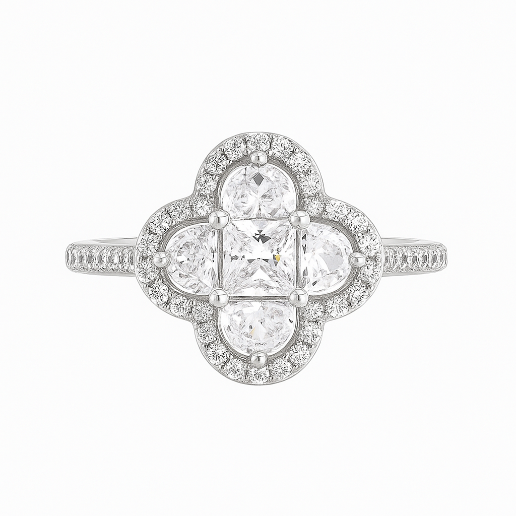 The Belle Éclat Ring captures timeless elegance with its intricate clover-inspired design, symbolizing luck and...