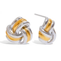 The Audrey studs bring timeless elegance with a modern twist. Featuring an intricate knot design in polished silver and gold tones, these statement studs capture both strength and sophistication. Their sculptural shape makes them versatile enough for everyday wear yet bold enough for a glamorous evening look.