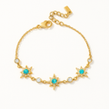 The Starlight Bracelet captures the magic of the night sky with its delicate double-layered design. One chain features tiny celestial charms—a crescent moon, twin stars, and a soft blue gemstone that adds a hint of sparkle—while the second layer brings subtle texture with polished gold beads. Lightweight, elegant, and full of charm, this bracelet is perfect for stacking or wearing solo for a dreamy, everyday shine. Crafted from durable stainless steel, it’s waterproof, hypoallergenic, and made for long-lasting wear.