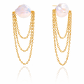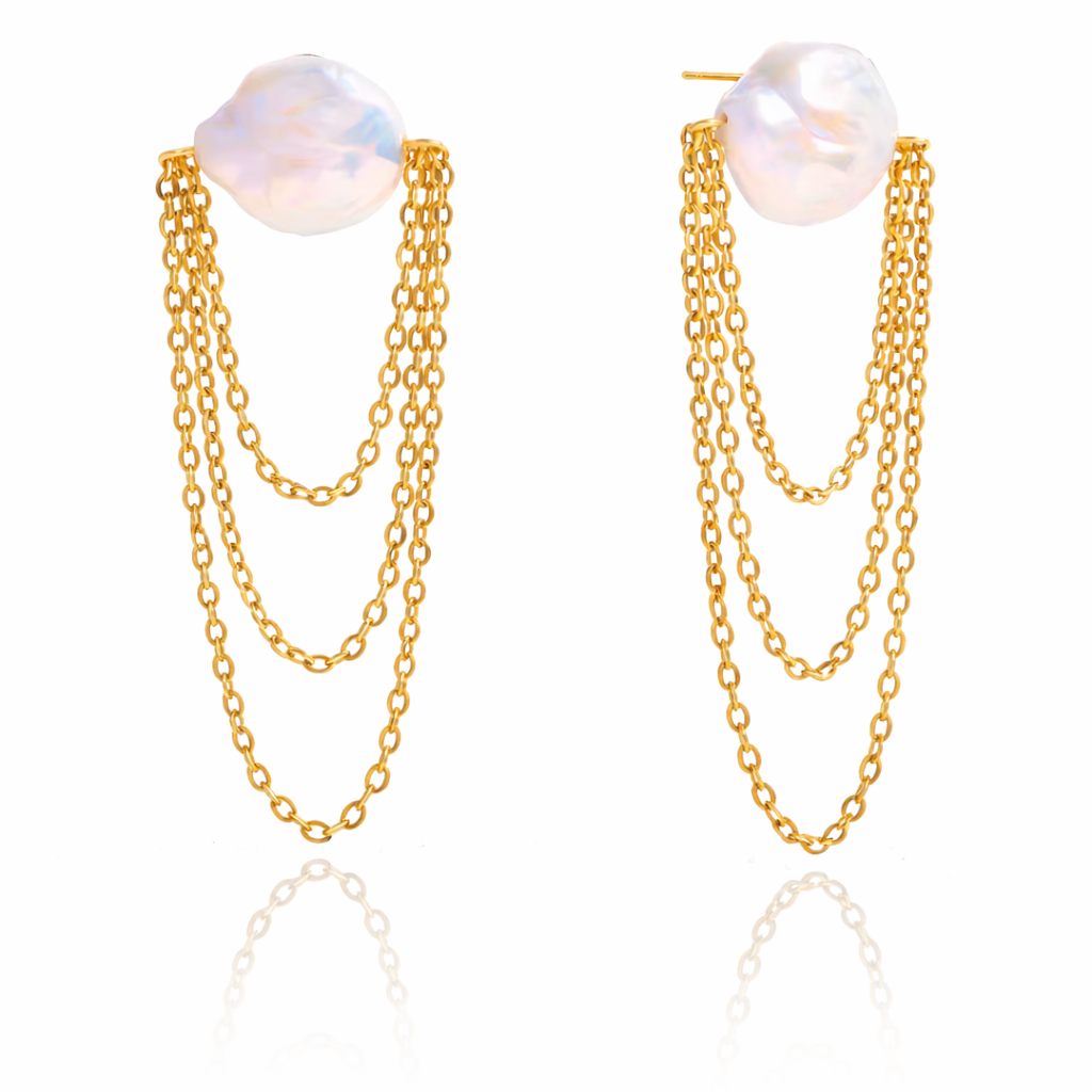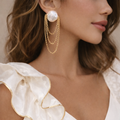 The Cassandra Earrings feature a luminous, organic pearl stud paired with softly cascading gold chains that move effortlessly with every step. Designed to blend timeless elegance with modern fluidity, the layered chains create graceful length while the pearl adds a refined, classic touch. Lightweight yet striking, the Cassandra Earrings bring elevated movement and sophistication to both day and evening looks.