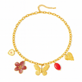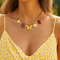 Gardenia Charm Necklace brings a touch of effortless whimsy to your everyday style. Featuring a curated mix of floral, butterfly, and gemstone-inspired charms, this piece blends feminine color with warm gold tones for a playful yet elegant finish. Each charm adds its own character, creating a necklace that feels unique every time you wear it. Lightweight, waterproof, and perfect for layering or wearing solo, it’s a standout piece that makes any outfit feel special.