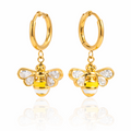 Honey Earrings bring a touch of golden sweetness to your everyday style. Designed with a polished gold-plated bee charm and sparkling cubic zirconia wings, they add the perfect blend of charm and shine to any look. Lightweight, feminine, and easy to wear, these earrings are a cute daily staple that stands out beautifully on their own or paired with your favorite pieces.