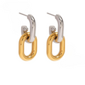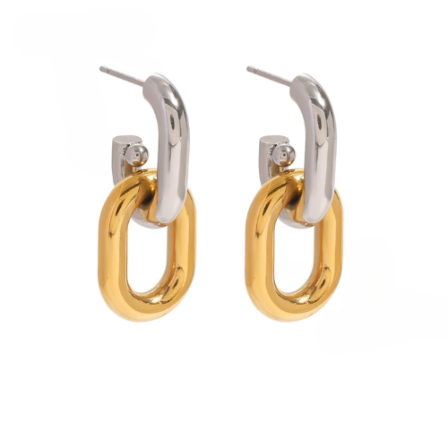 Make a bold yet elegant statement with these contemporary two-tone link earrings. Crafted from 18k gold-plated stainless steel, the polished silver top link flows seamlessly into a high-shine gold-tone oval link for a striking contrast. Designed for comfort and durability, they’re hypoallergenic, water-resistant, and tarnish-resistant—perfect for both everyday wear and special occasions. Whether paired with a blazer for a chic work look or a sleek dress for evening outings, the Huda Earrings bring modern sophistication to any outfit.