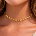 The Joyce Necklace features a delicate strand of finely engraved gold discs that catch the light with subtle movement and shine. Refined and understated, this piece rests beautifully along the neckline, adding a soft glow that feels both classic and effortlessly elegant. Designed for everyday wear, the Joyce Necklace is perfect worn on its own or layered for a polished, timeless look.