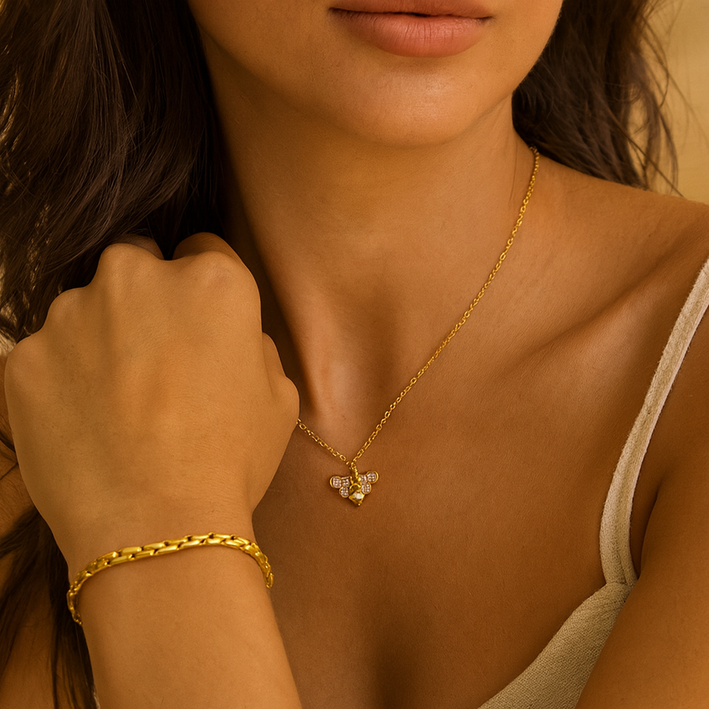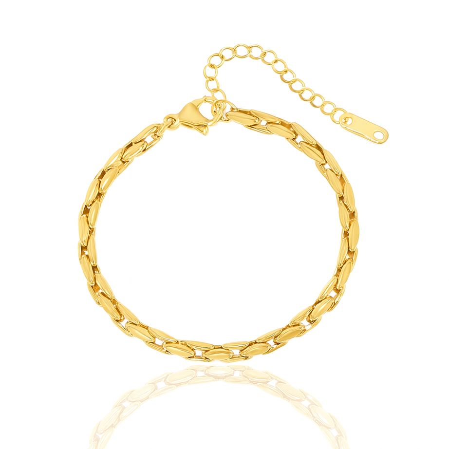The Mayumi Bracelet blends smooth, interwoven gold links with a warm, polished glow that feels effortlessly refined. Its timeless silhouette and soft curves catch the light beautifully, making it the perfect everyday piece to stack or wear on its own. Lightweight, versatile, and gracefully understated, the Mayumi Bracelet adds a touch of golden simplicity to any look.
