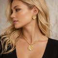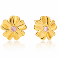 The Melina Earrings feature a sculpted gold flower design with softly contoured petals and a delicate pink crystal center for a subtle, feminine glow. Designed to make a statement without feeling heavy, these earrings add effortless elegance and charm to both everyday looks and dressed-up moments. Romantic yet modern, the Melina Earrings are a timeless addition to any jewelry collection.