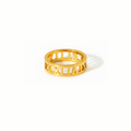 Refined and timeless, the Roma band embodies sophistication through its intricate Roman numeral design—a tribute to heritage and the passage of time. Crafted from 18K gold-plated stainless steel, this band blends classical elegance with modern craftsmanship. Its polished cutouts create a striking play of light and shadow, while the smooth inner surface offers a comfortable, everyday fit. A symbol of strength, beauty, and enduring love, the Roma Ring is perfect for both statement wear and daily elegance.