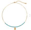 The Shay Necklace blends delicate turquoise beads with a dainty gold chain, creating a soft, sun-kissed look perfect for everyday wear. At its center sits a radiant sun charm, adding a warm, uplifting touch that feels both elegant and effortless. Lightweight, colorful, and easy to layer, the Shay Necklace brings a hint of summer to any outfit while remaining durable for daily use. Waterproof and hypoallergenic, it's made to shine for years to come.