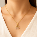 Sugar Cherry Necklace adds the perfect touch of sweetness to your look. Featuring a gold-plated cherry pendant sparkled with soft pink cubic zirconia, it brings a playful, feminine charm to any outfit. Lightweight, waterproof, and easy to style, it’s a cute everyday staple that stands out on its own or layered.